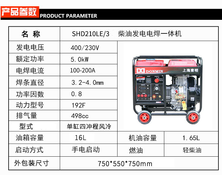 * 表示(shì)必填(tián)采購:100-200A 三相 5KW柴油發電電焊一(yī)體機SHD210LE/3