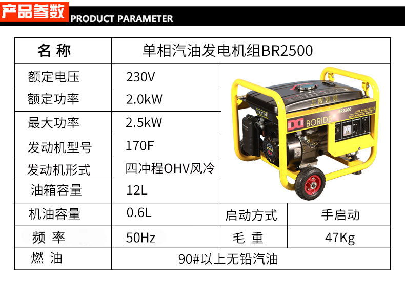 * 表示必填采購:2KW單相小型汽油發電機組BR2500
