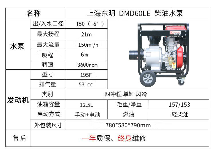 6寸柴油動力(lì)應急自吸抽水泵-DMD60LE