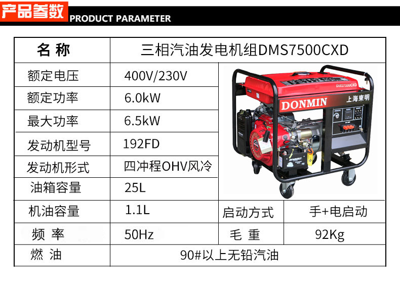 * 表示必填采購:6KW三相汽油發電機組,鑰匙電啟動發電機DMS7500CXD
