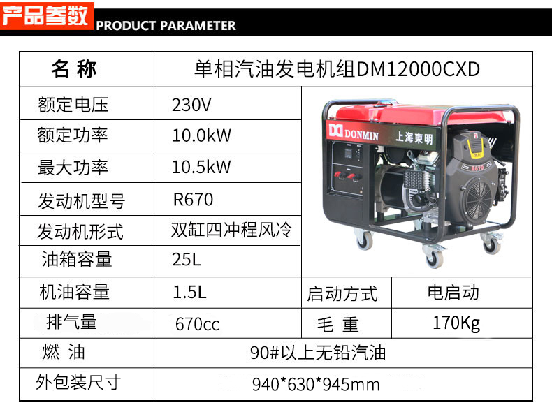 * 表示必填采(cǎi)購:單相10kW小(xiǎo)型汽油(yóu)發電機組DM12000CXD