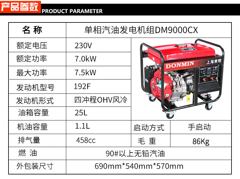* 表示必填采購:單相7kW小型汽油發電(diàn)機組(zǔ)DM9000CXD