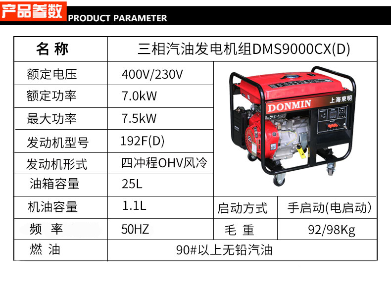 建築施工三相7.5KW 汽油小型發電機組(zǔ)DMS9000CX DMS9000CXD