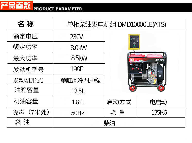 * 表示必填采購:冷鏈配套單相8kw無人值守ATS柴油發電(diàn)機組DMD10000LE(ATS)