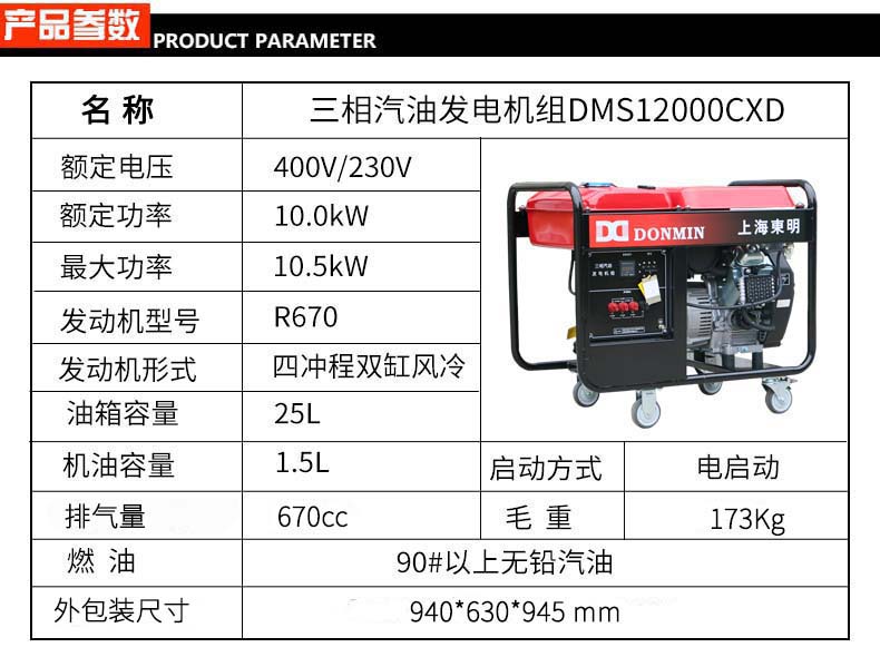 三相 10kW小型汽油發電機組 DMS12000CXD